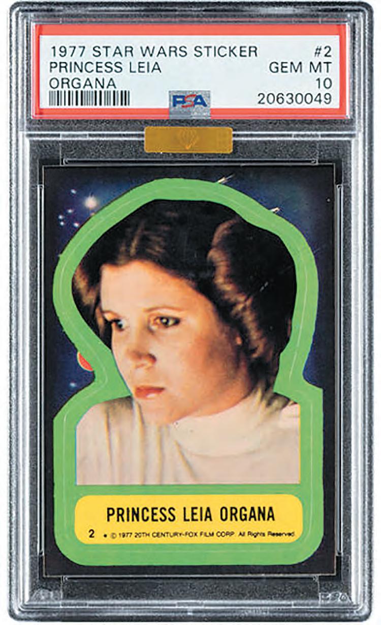 Here the only gem mint grade 1977 Topps “Star Wars” Series 1 - #2 Princess Leia sticker, PSA 10.