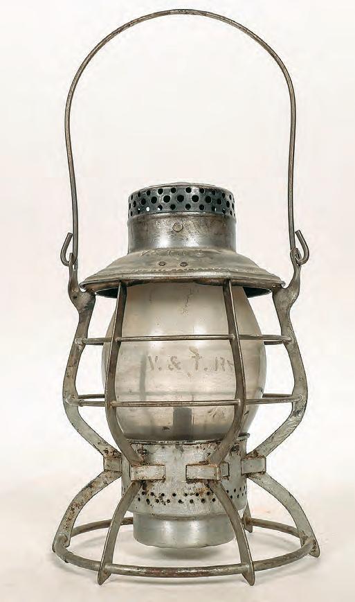A near-mint example of a marked Virginia & Truckee Nevada railroad lantern from around 1915, etched “V. & T. Ry” and the very top marked with embossing, sold for $2,375.