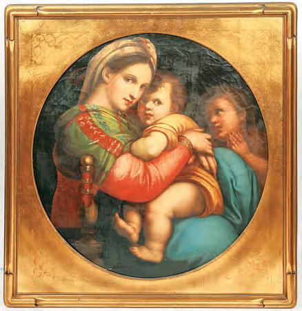 An early copy of Italian Renaissance artist Raphael’s masterpiece from ca. 1815-16, “The Madonna of the Chair” (or “Madonna della Seggiola / Sedia”), went for $3,875. The original is housed at the Pitti Palace in Florence, Italy. Also,