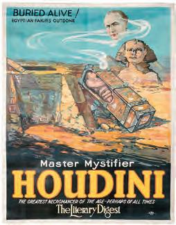 perform, his escape from a coffin buried under mounds of heavy earth. It was decorated with Houdini’s head floating above an Egyptian scene featuring the Sphinx.
