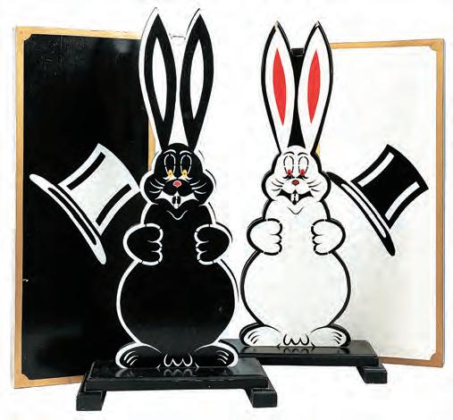 “Jumbo Hippity-Hop Rabbits” was estimated at $500-$1,000 and traded hands at $22,800. This apparatus was made by the company Owen Magic Supreme around 1985. These stencil-painted pair of black and white rabbits each measured 26.5 inches tall and were marked on their undersides. According to Potter’s experts, this pair was the only model in this rare size that they had ever handled.