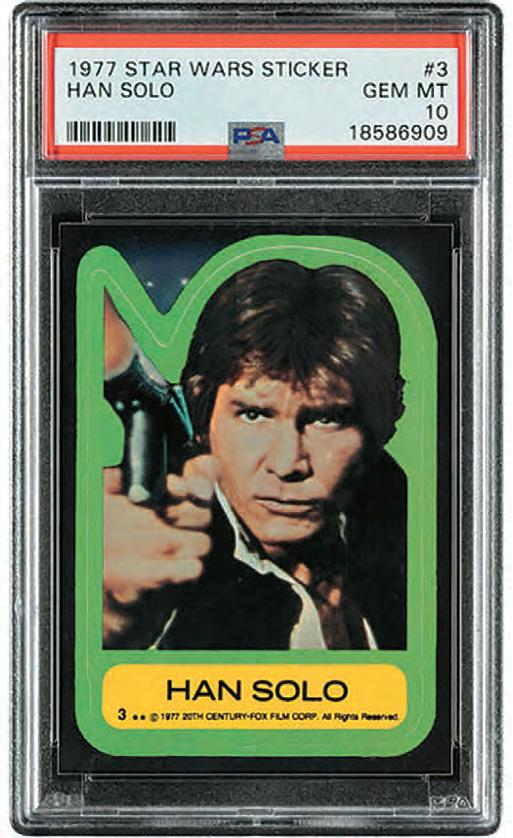 This is the only known gem-mint Han Solo from Topps’ first series of “Star Wars” trading cards, 1977 Topps “Star Wars” Series 1 - #3 Han Solo sticker, PSA 10.