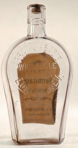 Frank Abadie pint-size, knife edge coffin Nevada whiskey bottle with the original paper nearly intact, clear in color, ca. 1884-86, one of the top Nevada whiskeys out there, realized $2,875.