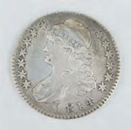 A ca. 1893, first generation Colt single action Army revolver, .38-.40 caliber, nickel plated, with a 7.5 inch barrel and built on a black powder frame, hit the mark for $3,875. The gun came with a large scabbard holster. Also, a ca. 188695 purple half-pint pumpkinseed whiskey flask bottle from Wine House / Liquors & Cigars / Reno, Nev., the older variant, sold for $2,625. Day three showcased 517 lots of antique and vintage stocks and bonds, banking, mining, collectibles, industry and oil, railroad and transportation, and miscellaneous. Day four contained over 650 lots of minerals, mining, artifacts, ephemera, scales, numismatics, tokens, philatelic, stamps, covers, Wells Fargo/Express,