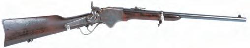 An outstanding “Indian Wars” Spencer carbine manufactured 1865-66 and chambered in Springfield .50-caliber carbine cartridge, has strong cartouche on stock wrist, appropriate sub-inspector stamps, British proof marks on breech of barrel and top of frame, and will be estimated at $8,000-$10,000.
