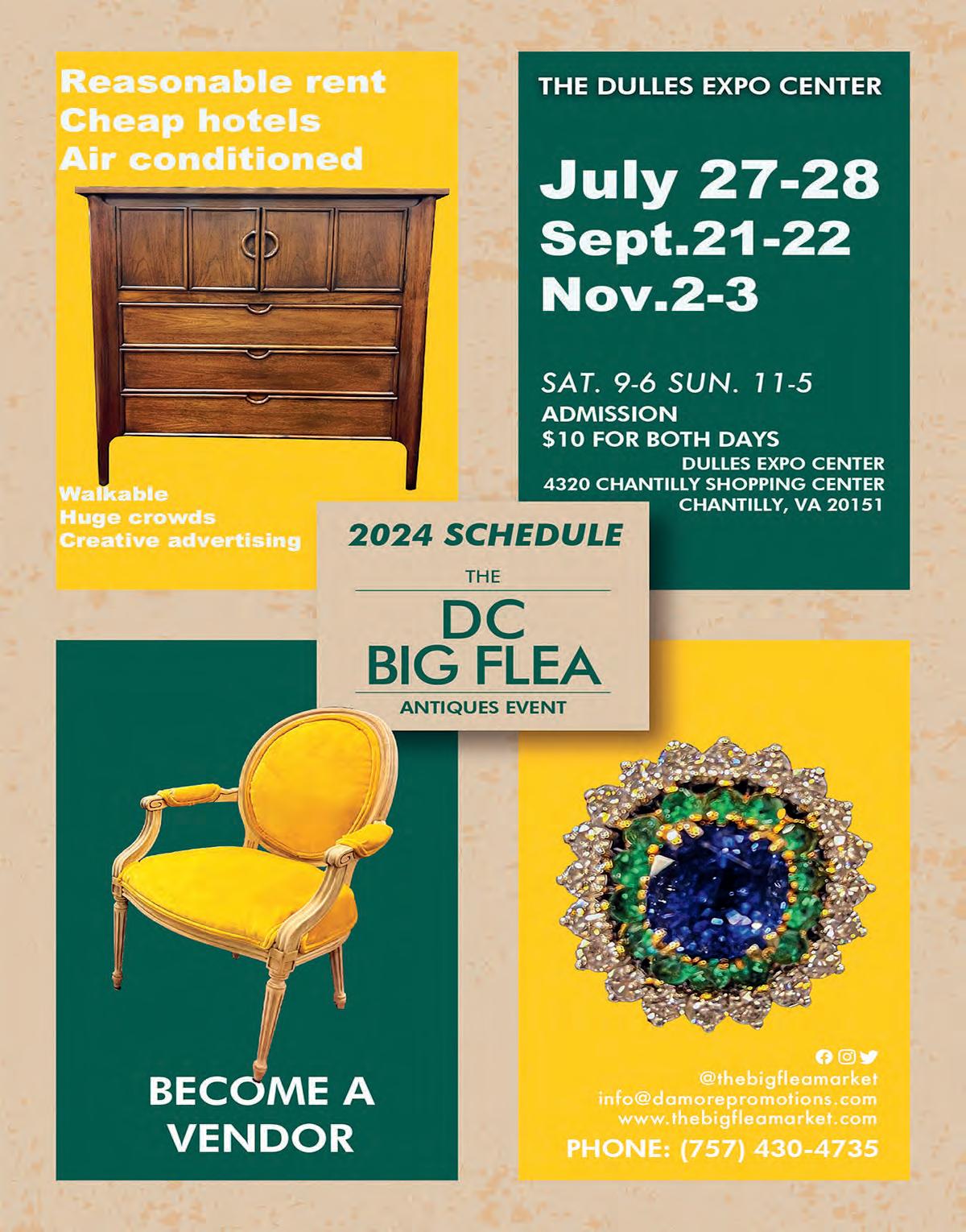 antiquesandauctionnews.net Antiques & Auction News — June 14, 2024 — 3 Located At 125 Bank Ave. Historic Columbia, Pennsylvania 717-684-8514 From Rte 30...Take Columbia/Marietta Exit; Follow 441 (Third St.) into Downtown Columbia; Turn Right onto Locust St., Go a Block-And-A-Half; Turn Left on Bank Ave. Up to 40 % StorewideOff RIVERTOWNE ANTIQUECENTER Daily 10am-5pm ClosedTuesday Anniversary Sale Win $100 Gift Certificate Friday, Saturday & Sunday June 28th, 29th & 30th 20th Year Like us on Facebook.com/RivertowneAntiques R107842 R061243 In The Historic “White Barn” BRANDYWINE RIVER ANTIQUES MARKET Limited Space Available for Quality Dealers Only Bank Barn offering 15,000 Sq. Ft. of Quality Antiques, Primitives, Estate Furniture, with Appropriate Accessories & Smalls. 878 Baltimore Pike (Rt. 1) CHADDS FORD, PA 19317 Open 10-5 Wednesday Thru Sunday Phone 610-388-2000 Fax 610-388-2720 E-Mail brantiques@comcast.net Located Directly On Rt. 1 “At The White Barn” brandywineriverantiques.com 135 Bridge Street, Columbia, PA 17512 717-684-0009 • www.bootlegantiques.net Open Wed.-Thurs. 10-5, Fri. 10-8, Sat. 10-5, Sun. 1-5, Closed Mon. & Tues. R107458 135 Bridge Street, Columbia, PA 17512 ANTIQUES & ODDITIES 10% OFF with ad Antiques & Collectibles Antique MARKETPLACE In Frederick, Md. 110 Dealers 5862 Urbana Pike (Rt. 355 So.) Frederick, MD oldgloryantiques.com Open Daily 10-6 “Late” Thursdays ‘til 8 pm Furniture Art & Prints Advertising • Textiles ���������������������� Records • Pottery • Civil War Items 301-662-9173 R102157 A Fun Place To Shop! Open Daily 10-6 Antique Mall BEAVER CREEK ANTIQUES MARKET 20202 National Pike Hagerstown, MD 301-739-8075 OPEN DAILY “BIG CITY Antiques at Country Prices” (Buying & Selling) OVER 150 DEALERS WITH QUALITY ANTIQUES www.beavercreekantiques.com R101991
