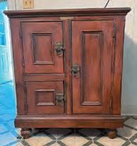 Furniture Sold at 12pm: Marble top side tables, Queen Anne style high boy, iron bed, two pcs dresser night stand, vintage patio two pcs pine china hutch, dining table 6 chairs, paint blue apothecary cabinet, antique oak ice chest, early two drawer desk double plank, Windsor benches, grandmother clock, Victorian Style Couch with side chairs, oak hall tree, blue painted, Hoosier cabinets, corner cabinets, cherry jewelry chest, antique floor radios, t pcs antique bedroom set, multiple antique chest, many cast.