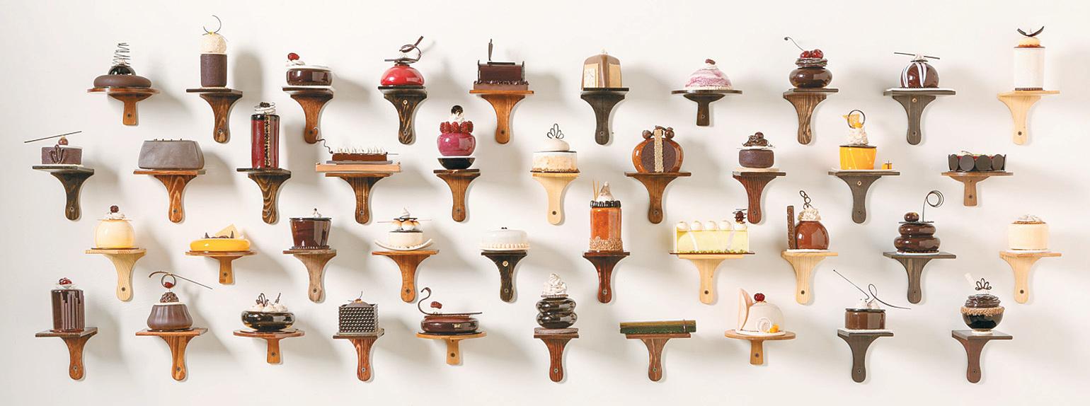 Shayna Leib’s “Pâtisserie, The American Series, (41 different pastries),” 2018, is made of glass and ceramic, measuring 30-by-85-by-8 inches overall, courtesy of the artist.