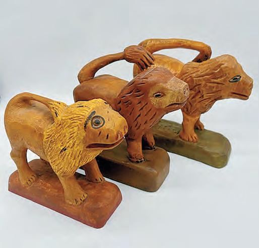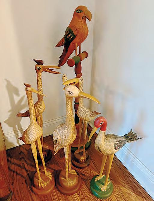 trade, but later relied on his folk art for a living. He carved many creatures, such as birds, including eagles, herons, cranes, storks, roosters, and parrots, along with other figures such as lions,