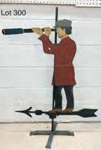 Blackamoor Figures, Japanese Kanban Signs, Antique Dolls, Hubley Cast Iron, Fenton Glass, Vintage Signs. 19th Century Weathervanes: Straight From A New England Collector. A Finely Painted Whaler With Telescope, A Rare Gilt Parrot With Spread Wings As Found, A Plate Steel Horse With Rider - House And Flag, A J W Fiske Stag With Directionals, A Lightning Rod With A Hand-Cut Revolutionary War Soldier Attached, A Modern Copper Goose Weathervane. Loetz: An Exceptionally Rare Art Nouveau