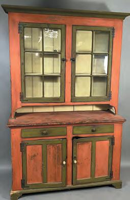 Over 500 lots with categories Contemporary Folk Art, Stoneware and Pottery, Glassware and China, Folk Art and Woodenwares, Metalwares, Artwork, Textiles, Furniture and Miscellaneous. Items include a rare Cowden & Wilcox Crock attributed to Shem Thomas, a “Summer 1967” oil on panel painting by Maud Lewis, a very rare Mahantongo Valley 2-Part Dutch Cupboard, Regina Orchestral “Corona” disc changer music boxes, a Berks County, PA Painted Softwood Dower Chest, several Grand Roller Organs, copper Horse and Rooster Weathervanes, a rare Pennsylvania Squirrel Wood Butter Print, a "Bomberger's Pure Rye" Bottle and Shot Glass, a large Halloween Theme Hooked Rug, Coca-Cola Tin Litho Trays, Gristmill Stones, and much more!
