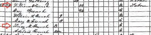 The 1855 Massachusetts State Census in Taunton, Mass., shows a William E. French (1820-1866) working as a “laborer.” He also has a 3-year-old daughter named Lucy M. French (1852-1907).