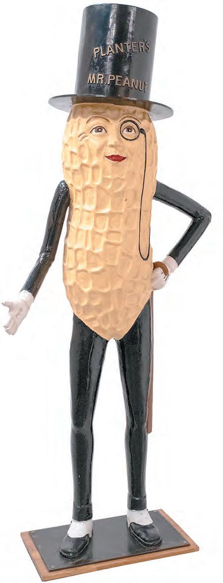 the roaster. The point-ofsale store display was an original Planters roaster restored with a contemporary Mr. Peanut figure. That w asn’t the only Mr. Peanut item up for bid. A scene-stealer of monumental height, a 1950s-’60s P lanters Mr. Peanut fiberglass figure made by Old King C ole Mfg. Co., standing nearly 9 feet tall, found