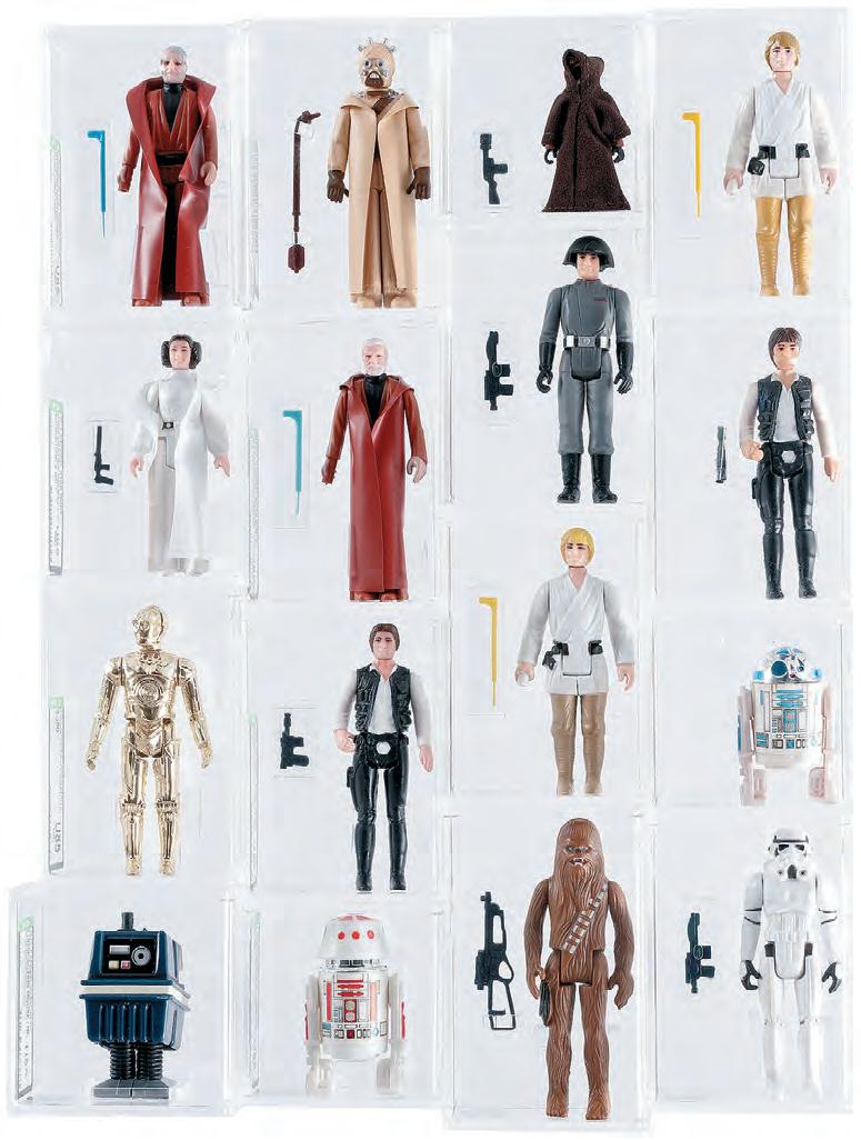 Here is one section from a complete set of 92 “Star Wars” (1977-1985) uncirculated AFAgraded action figures that Kenner released for its “Star Wars,” “The Empire Strikes Back,” “Return Of The Jedi,” “The Power Of The Force” toylines, with the addition of some variants, duplicates and two figures by Lili Ledy (Mexico), 114 figures in total. Each loose figure is encapsulated and individually graded by AFA. This is the first time a complete set of this type has come to auction.