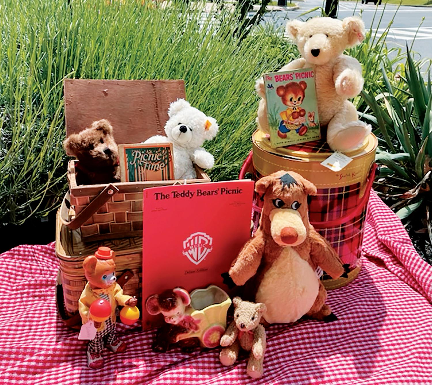Throughout the month of June, teddy bears will be picnicking in the special sales display case at the Haddon Heights Antiques Center. For those who collect vintage picnic baskets and related objects such as coolers, thermos bottles, or mid-century modern plates and cups, there is a nice selection on sale. There are vintage wicker and metal picnic baskets in varying sizes, perfect for stacking and storage, to use or display.