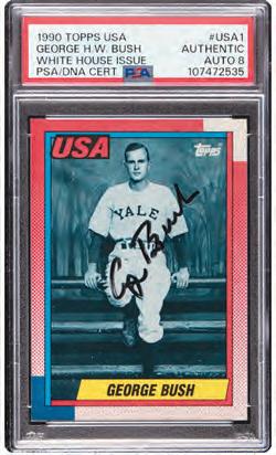 A signed 1990 Topps USA George H.W. Bush (White House Issue) #USA1 PSA Authentic, PSA/DNA Auto 8 card sold for $51,240.