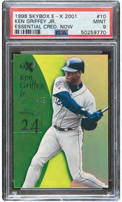 One lot set a record weeks before the auction closed and kept flying like the 630 career home runs belted by the superstar it spotlights. Prior to this auction, no Ken Griffey Jr. card ever sold for six figures. But bidders kept taking their cuts at the 1998 SkyBox E-X 2001 Ken Griffey Jr. (Essential Credentials Now) No. 10 PSA Mint 9 that was offered in this auction until it climbed all the way to $280,600.