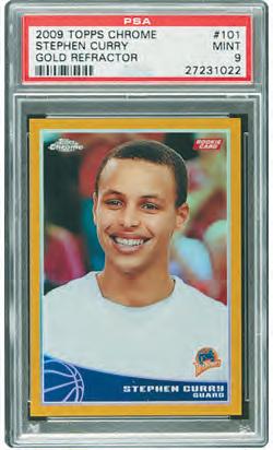 A 2009 Topps Chrome Stephen Curry (Gold Refractor) #101 PSA Mint 9 numbered 22/50 rookie card realized $237,900.