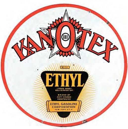 This double-sided Kanotex Ethyl Gasoline (New York) circular double-sided porcelain sign with excellent color and gloss throughout both sides, sides graded 8.25 and 8.0, respectively, sold for $10,455 against an estimate of $2,000 to $8,000.