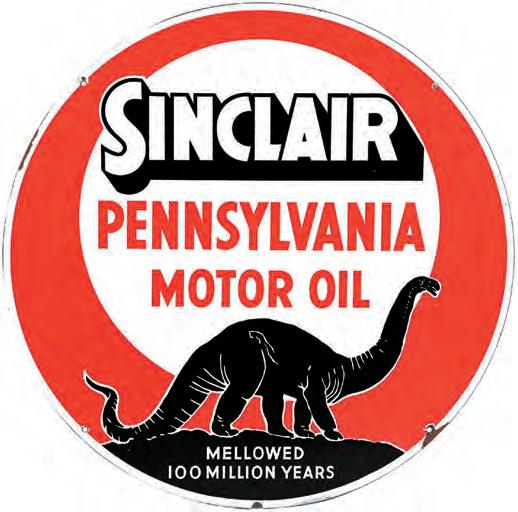 regarded as classics by those who collect gas and oil advertising. Two of the most sought-after auction treasures were produced for the Sinclair Oil Corporation, a firm that launched its business in 1916 from the combined assets of several small petroleum companies.