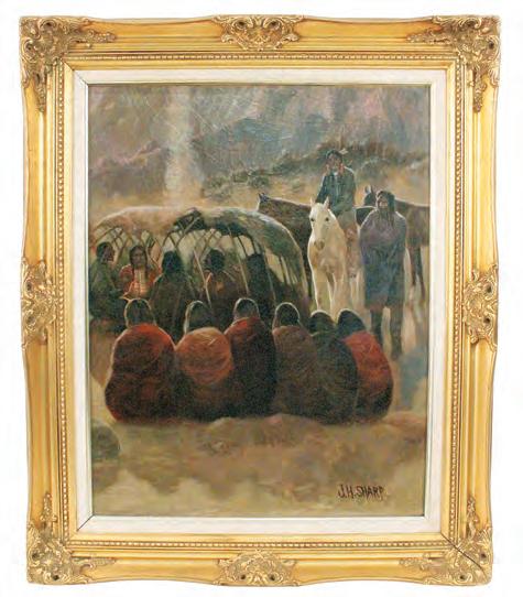 This J.H. Sharp painting, “Indian Smoke Lodge,” which depicts an early 1900s Native American encampment with a smoke lodge scene, attained $23,000.