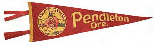 It’s rodeo time! “Yippee! Let ‘Er Buck!” a Pendleton, Ore. pennant.