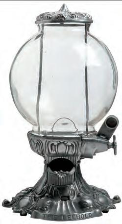 one-cent Gumball Vendor realized $4,800. This ca. 1917, Art Nouveau-styled machine was made from ornately cast aluminum and topped with a glass globe. It was sold with period padlocks and keys and Continued on page 7
