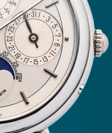 If Patek Philippe enjoys exceptional renown and rare prestige, it’s thanks to the consistency with which this legendary House has maintained a philosophy of excellence since its foundation. This hand-wound men’s wristwatch in platinum is irrefutable proof of this. Its sale price was Antiquorum’s highest in Asia since 2002, making it the world record for this reference. Formerly owned by the Sultan of Oman, Qaboos Bin Said (19402020), this ref. 5207 is equipped with nine horological complications, the only example known to date with a platinum bracelet.
