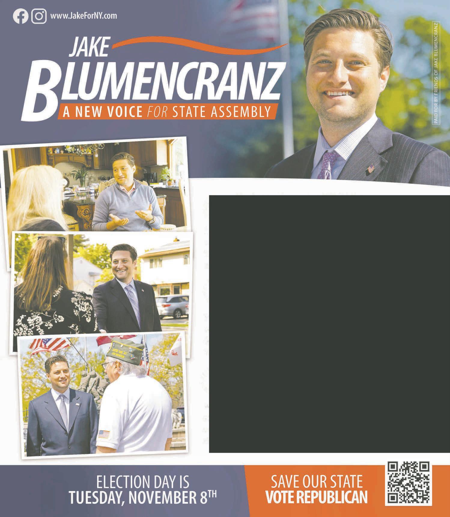 Jake Blumencranz (Republican)If elected: I’m running for the State Assembly to lead Long Island into a safer, more affordable future. With inflation, high taxes and rising gas prices hurting Long Islanders, I have a four-point plan to permanently cut gas taxes, increase property tax breaks for homeowners, cut income taxes for middle class families, and eliminate waste, fraud and abuse within the state budget.