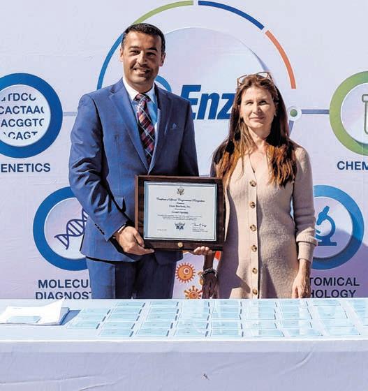 Enzo’s Long Island footprint goes back four-plus decades. In the interim since its founding, it has evolved into becoming a global company that utilizes cross-func tional teams to develop and deploy products, systems and services that meet the ever-changing and rapidly growing needs of health care today and into the future. Underpinning Enzo Biochem’s products and technologies is a broad and deep intellectual property portfolio, with more than 475 patents it uses in 200,000 products that in clude antibodies, probes and dyes for drug development and pharmaceutical companies around the world. And while the dust has barely settled on this development, Erfanian can see his company’s international imprint growing larger in the next five years, all while having Long Island serve as ground zero thanks to a dedicated and talented workforce he’s quick to credit.