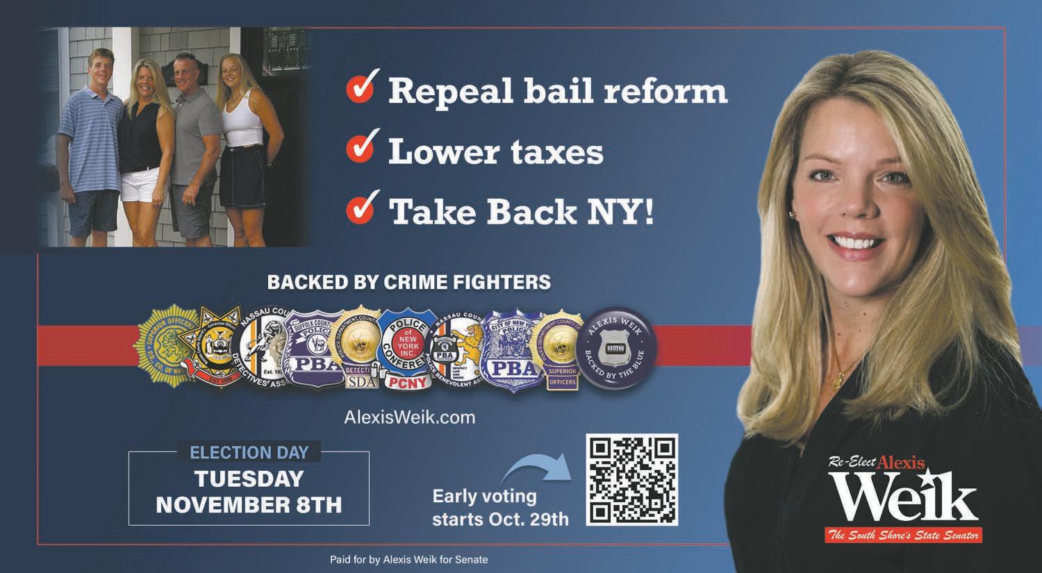 unprecedented coalition of law enforcement organizations from across New York State and, as Senator, Weik has made public safety a top priority to ensure safe communities where families can thrive.