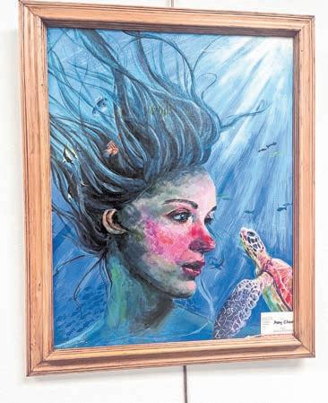 Student Amy Chen, who illustrated a young woman underwater among sea creatures in a piece titled <communication>, won Best in Show. Chen worked on that piece in a summer class at Sally Studio Art Center, where the theme was centered around the ocean.