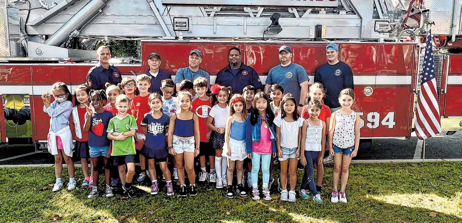 Earlier this month, the Roslyn School District held a special event to commemorate the 21st anniversary of the Sept. 11, 2001 terrorist attacks in New York and Washington D.C.. The day held special significance in that members of the Roslyn Highlands volunteer fire department were on hand to meet administrators, teachers, and school children. Pictured here are grade school students, along with volunteer firemen posing with teachers and students.