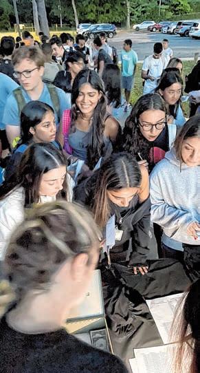 The event was a way to rekin dle friendships, commemorate their last first day of school and to set their personal goals for their senior year. As the seniors enjoyed breakfast provided by the PTO, the senior class advisers distributed T-shirts and a group class photo was taken to capture the beauty of the sunrise and the start of their senior year together.