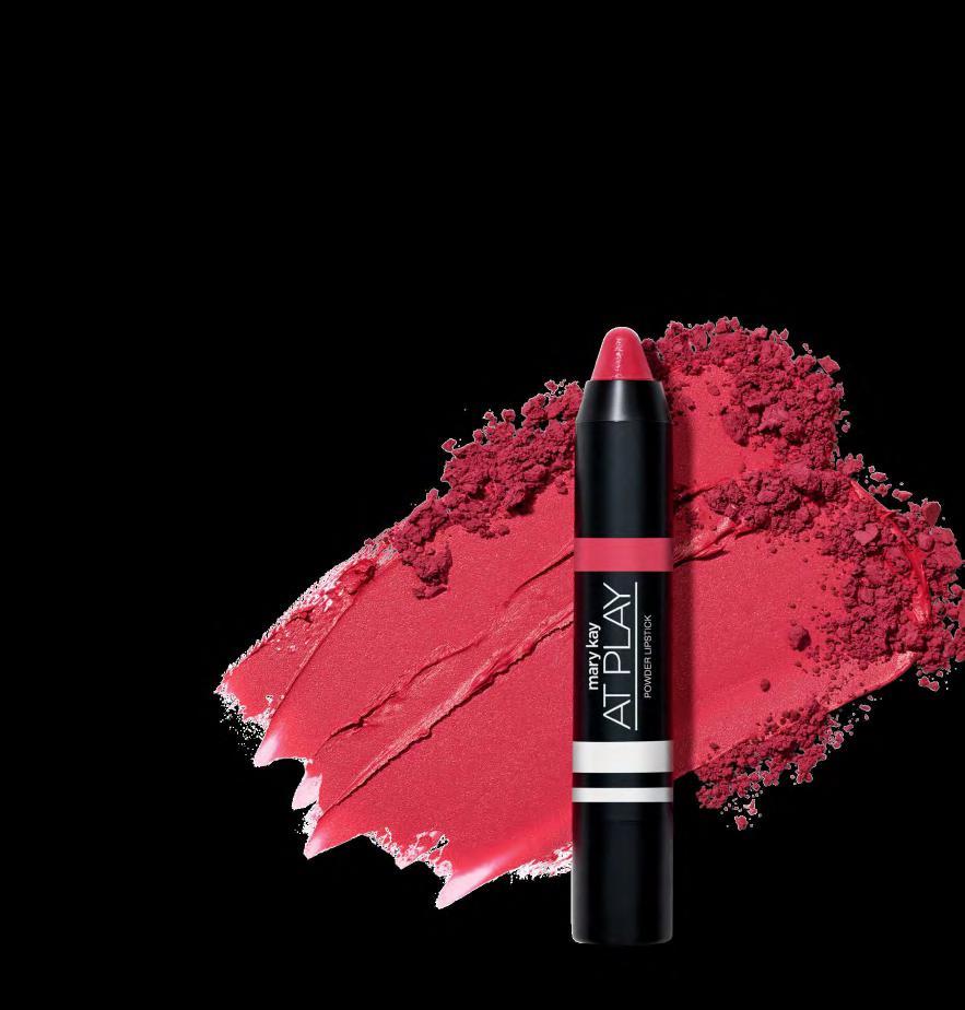 Labial con Acabado en Polvo Mary Kay At Play® de Edición Especial, $221 c/u Innovadora fórmula de pigmentos en polvo que aportan intensidad de color y cobertura completa.