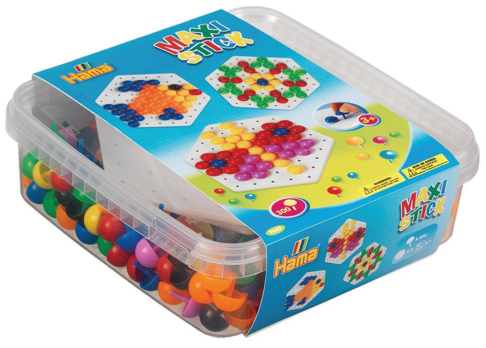 Περιλαμβάνει: Περίπου 250 Hama Maxi Sticks/Pegs. 9 διαφορετικά χρώματα.