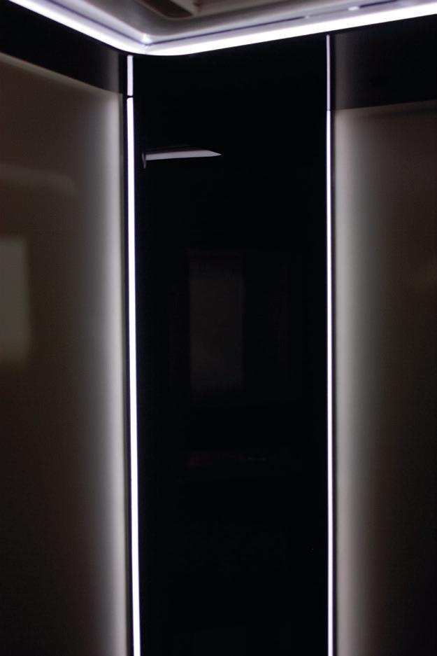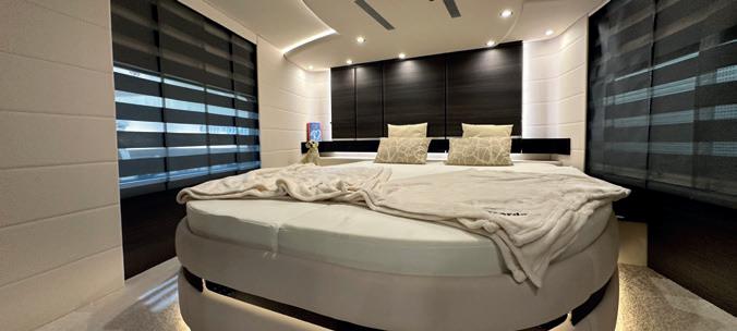 Famous for its luxury liners, Morelo has decided to switch the living arrangements of the Palace 88 DL model. The living area is now located at the rear of the vehicle, based on Iveco mechanics and measuring around 9.0m. A large lounge with a wall equipped with a large screen constitutes the heart of what is, in all respects, a true apartment. The pass-through bathroom and bedroom are located at the front, created by lowering an electric longitudinal double bed over the driver’s cab.
