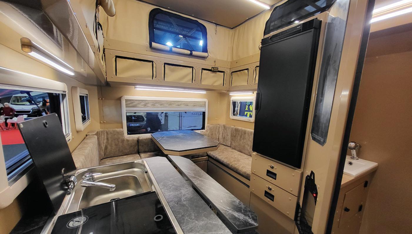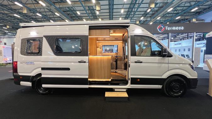 Developed in collaboration with the Italian coachbuilder Caselani, the Vanderer One is based on the Citroën Berlingo, including an electric version. The exterior pays homage to the legendary 2CV, featuring round and protruding headlights and a roof that slopes towards the rear. The interior, on the other hand, is modern and includes a convertible sofa bed, a kitchen, and a pop-up roof with an additional bed. Displayed by the German specialist Caravan Grebner, it attracted significant attention at the CMT.