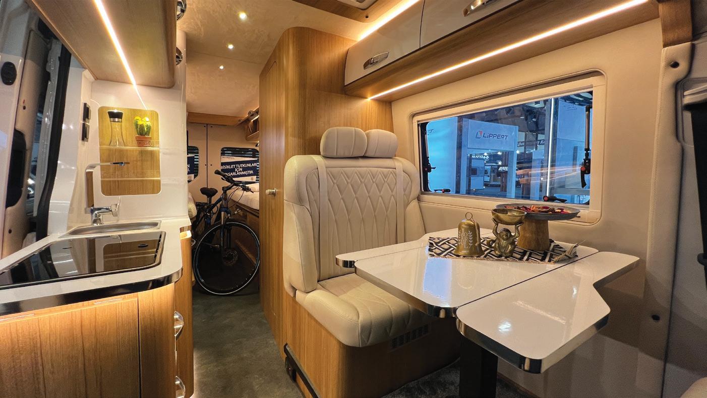 ferent internal living layouts and multiple furnishing solutions” says Renato Antonini. “The ways of usage are also changing. The difference is not only in the color tones of the decorations; today’s challenge revolves around the relationship between lightweight design and cost. New materials are entering the scene, and home automation is taking its first steps on RVs. The industry partly embraces trends from the home furnishing sector and partly creates its own language, resulting in specialized products. Motorhomes and caravans are no longer just holiday vehicles; they have become multifunctional spaces, perfect for remote work as well as supporting various sports activities”.