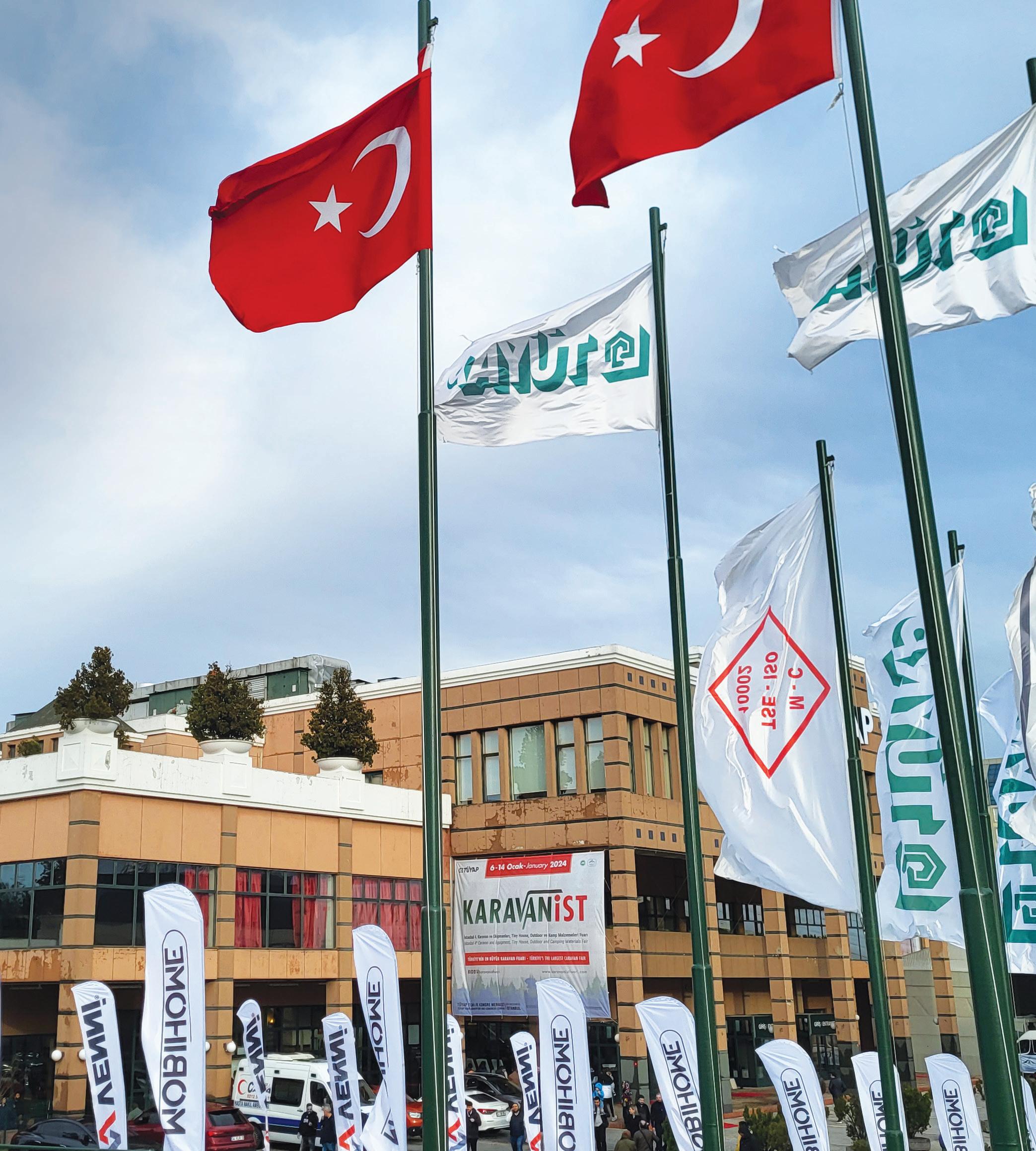 applications are open), North America, Australia, Japan, and naturally in Italy, where this newspaper is produced then distributed all over the world, because Aboutcamp BtoB is a global newspaper. We become aware of this when we travel to international shows and are welcomed with great warmth and affection. This happens regularly at European fairs, but it has also happened in Melbourne, Elkhart, Tokyo, and recently during our visit to Istanbul. The market in Turkey is quite surprising and is developing rapidly. You will find an extensive report on the Karavanist Fair in this issue. And we also report on the German CMT fair in Suttgart, which serves as a barometer for the market in Europe. Germany, with its extraordinary registration numbers, is the driving force of all of Europe. Operators seem satisfied with the market trend, which is slowing down, but for now, does not worry the industry. We invite you to delve into this issue, which is brimming with interviews, reports, technical analysis, and a wealth of information.