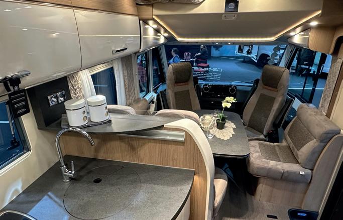 Alde. I due nuovi modelli si concentrano anche sulla comodità abitativa, optando per una dinette confortevole con due divani opposti. L’area cucina è particolarmente interessante, con un design concavo e cassetti a tutta larghezza.
