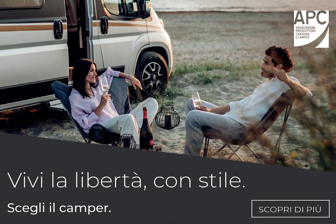 soggetti diversi che riprendono sia immagini in esterno che in interno) dalla headline incuriosente: “Vivi la libertà, con stile” con l’invito a cliccare per saperne di più. L’utente viene quindi redirettato sulla landing page www.sceglilcamper.it dove potrà proseguire ad informarsi. Continua l’importante impegno di APC anche sul fronte dell’ufficio stampa, 365 giorni l’anno: la comunicazione si rivolge sempre più a media che trattano temi di lifestyle e trendsetting, con l’obiettivo di presentare il brand “camper” a un nuovo pubblico, più glamour e attento ai megatrend del futuro. Importanti anche gli articoli apparsi su riviste femminili e su periodici e quotidiani letti da un pubblico medio/alto spendente: da Vogue Italia a Forbes a IlSole24Ore, solo per fare qualche esempio. APC auspica che questa iniziativa possa favorire una ricaduta positiva su tutto il settore. Il nostro sentito “Grazie!” va a tutti gli Associati APC produttori di camper che hanno finanziato questo terzo anno di campagna. Ai concessionari italiani va un sentito augurio di buon lavoro.