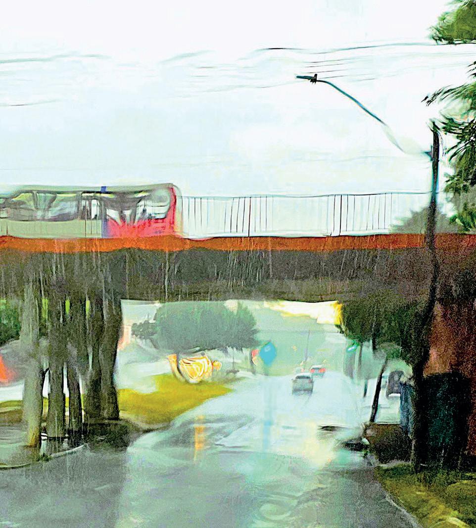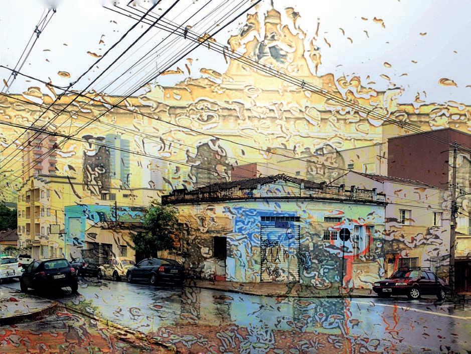 Olhando os re exos, as distorções que a luz sofre ao penetrar livremente na miríade de lentes convexas das gotas de água da chuva do para-brisa de meu carro vejo uma nova cidade; uma nova realidade; tudo se transforma em um mundo onírico e poético.