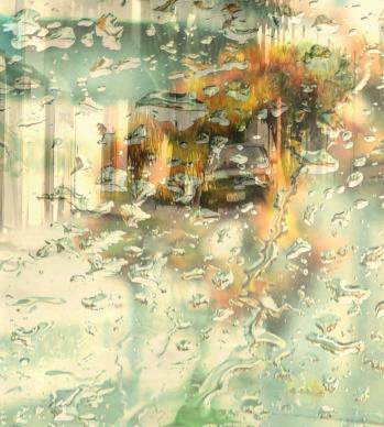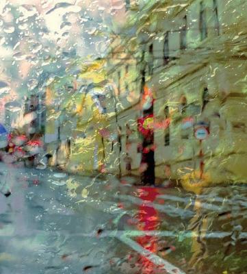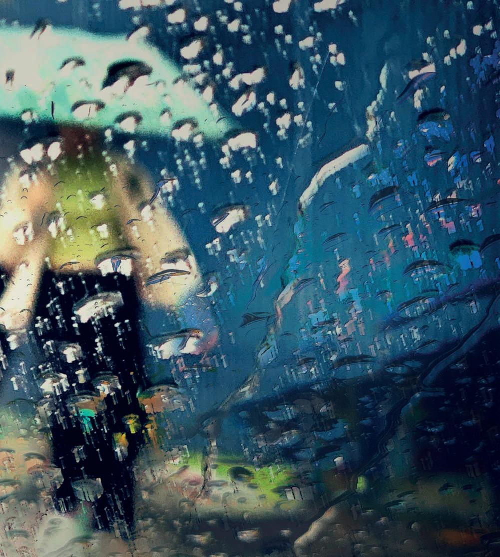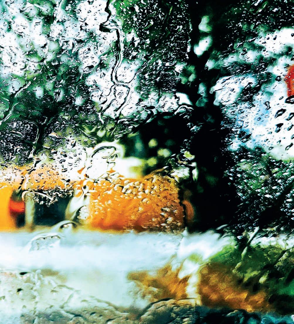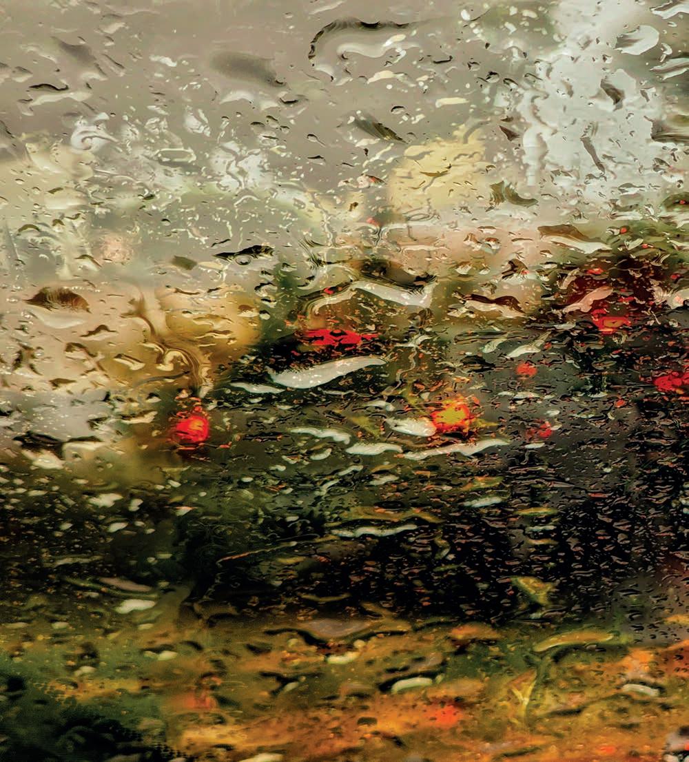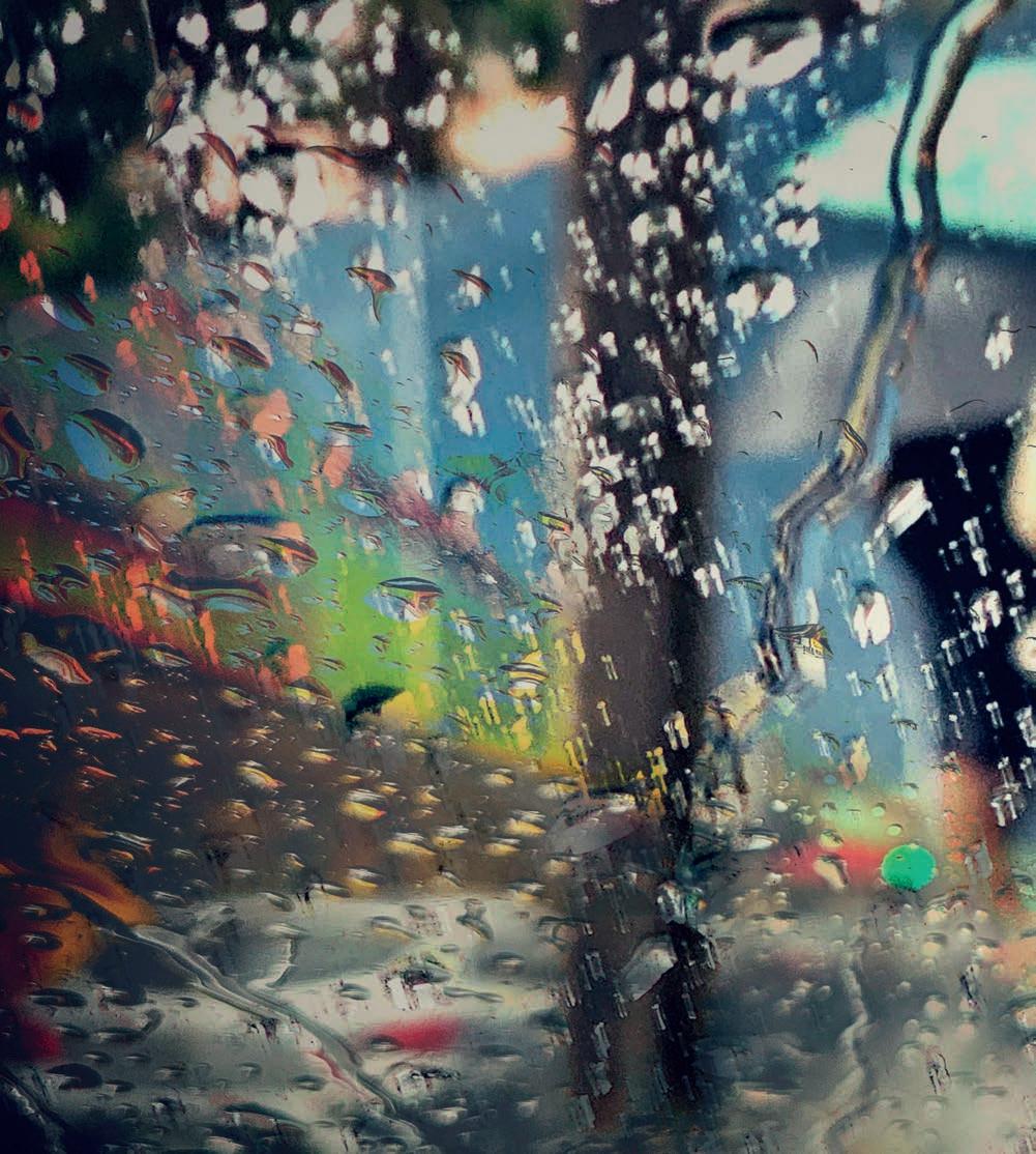 Looking at the re ections, the distortions of light that freely penetrates the myriad of convex lenses of rainwater drops on the windshield of my car, I see a new city; a new reality; everything transform into a dreamlike and poetic world.