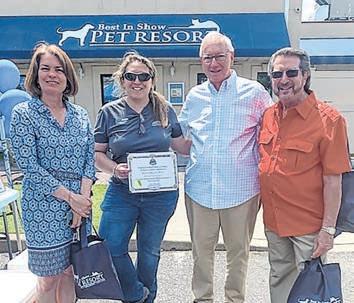 Congratulations to The Best in Show Pet Resort located at 244 Herricks Road, celebrating its 15th anniversary of offering boarding, day care, and pet adoptions. Lou Panacciulli and Rich Marotta from the Chamber of Commerce were joined by Town of North Hempstead Supervisor