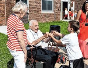 (Courtesy of the Floral Park-Bellerose Union Free School District) (Courtesy of the Floral Park-Bellerose Union Free School District) Second-grade students from Cherry Lane School helped raise the flag at the start of the celebration. Students sang patriotic songs during the Flag Day Celebration. (Courtesy of the Carle Place School District) Cherry Lane students dressed in red, white and blue for Flag Day on June 14. Cherry Lane students greeted World War II veteran Ed Muller (left) at the school’s Flag Day Celebration.