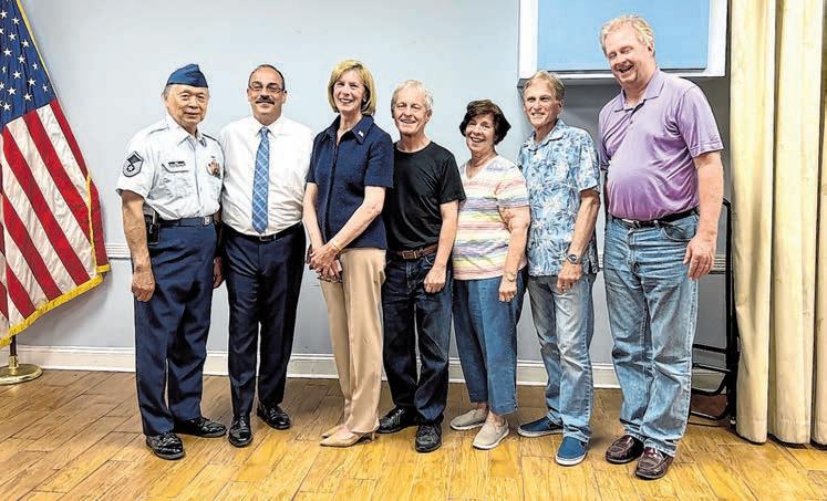 Attendees at the June meeting of the Albertson-Roslyn Heights Republican Club included Veteran Color Guard Peter Gong, Albertson Water Commissioner and Town of North Hempstead council candidate Ed Scott, Village of Flower Hill Trustee and Town of North Hempstead receiver of taxes candidate Mary Jo Collins,