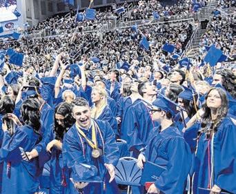 Sheer joy for the Massapequa High School Class of 2023 as they graduated at Hofstra University’s Mack Arena. (Photo courtesy of the Massapequa School District)