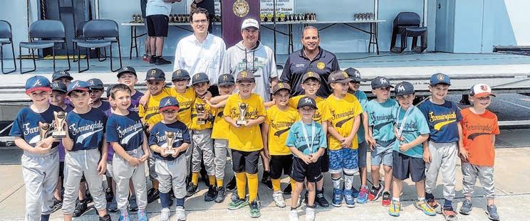 Oyster Bay Town Councilman Steve Labriola (first on right) and Assemblyman John Mikulin (first on left) joined Farmingdale Baseball League, Inc. for Baseball Day at Allen Park. The event featured a skills competition, all-star game, and car wash in support of the Cooperstown Team. Councilman Labriola thanked Farmingdale Baseball League, Inc. for giving students the opportunity to develop skills in the game of baseball while emphasizing good sportsmanship, promoting teamwork, and developing character.