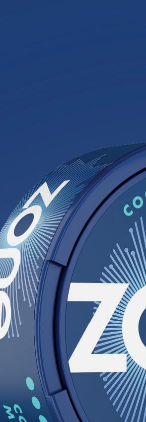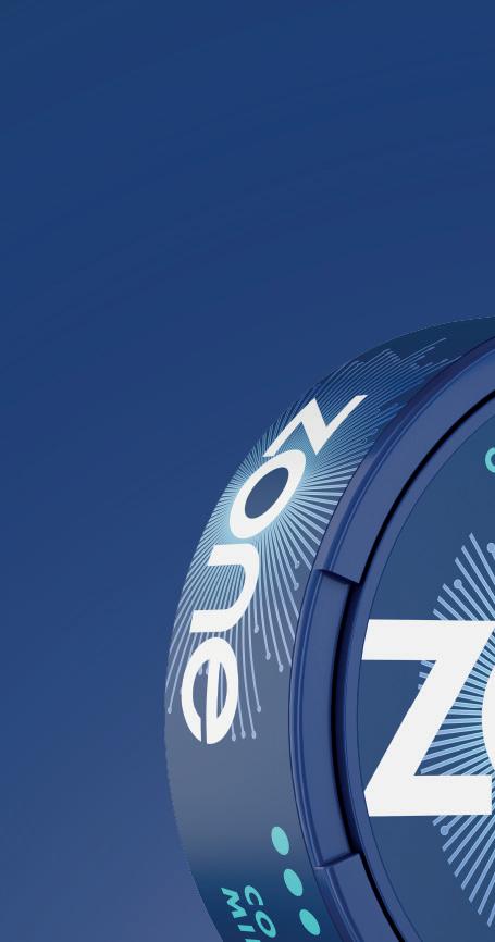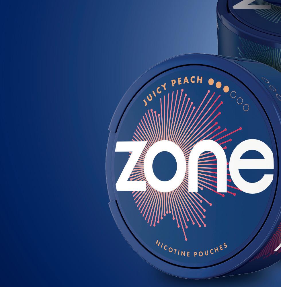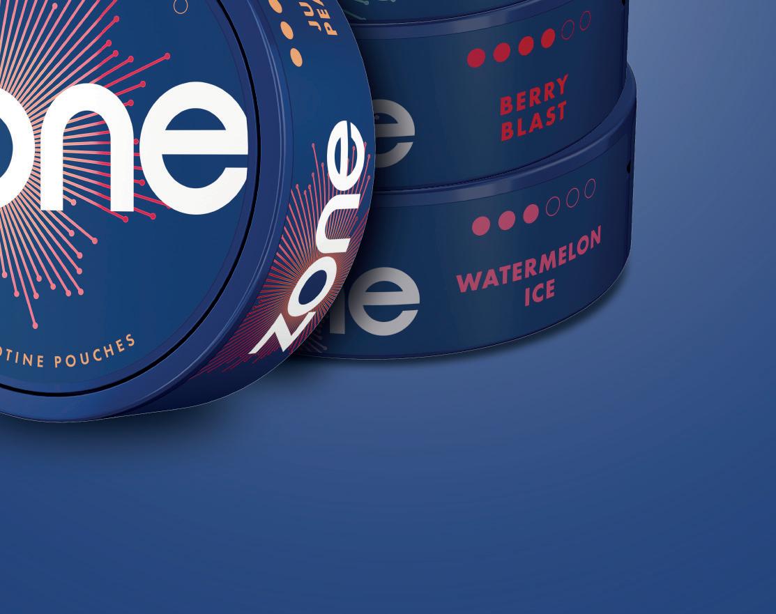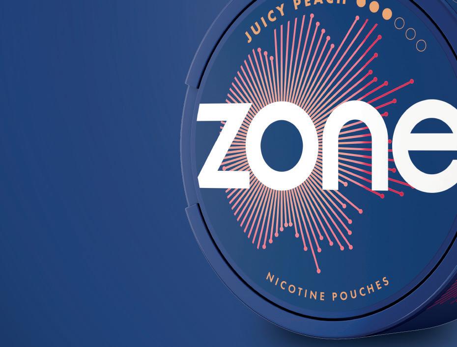 Zone comes in Sweet Mint, Cool Mint, Watermelon Ice, Juicy Peach and Berry Blast avours. Imperial states that 9–12mg strength products currently account for 43.4% of the nicotine pouch market [EPoS data October 2021 – June 2025] and Zone is available in 10mg nicotine strength across all its avours. Cool Mint and Berry Blast are also available in a higher 11mg nicotine strength variety.